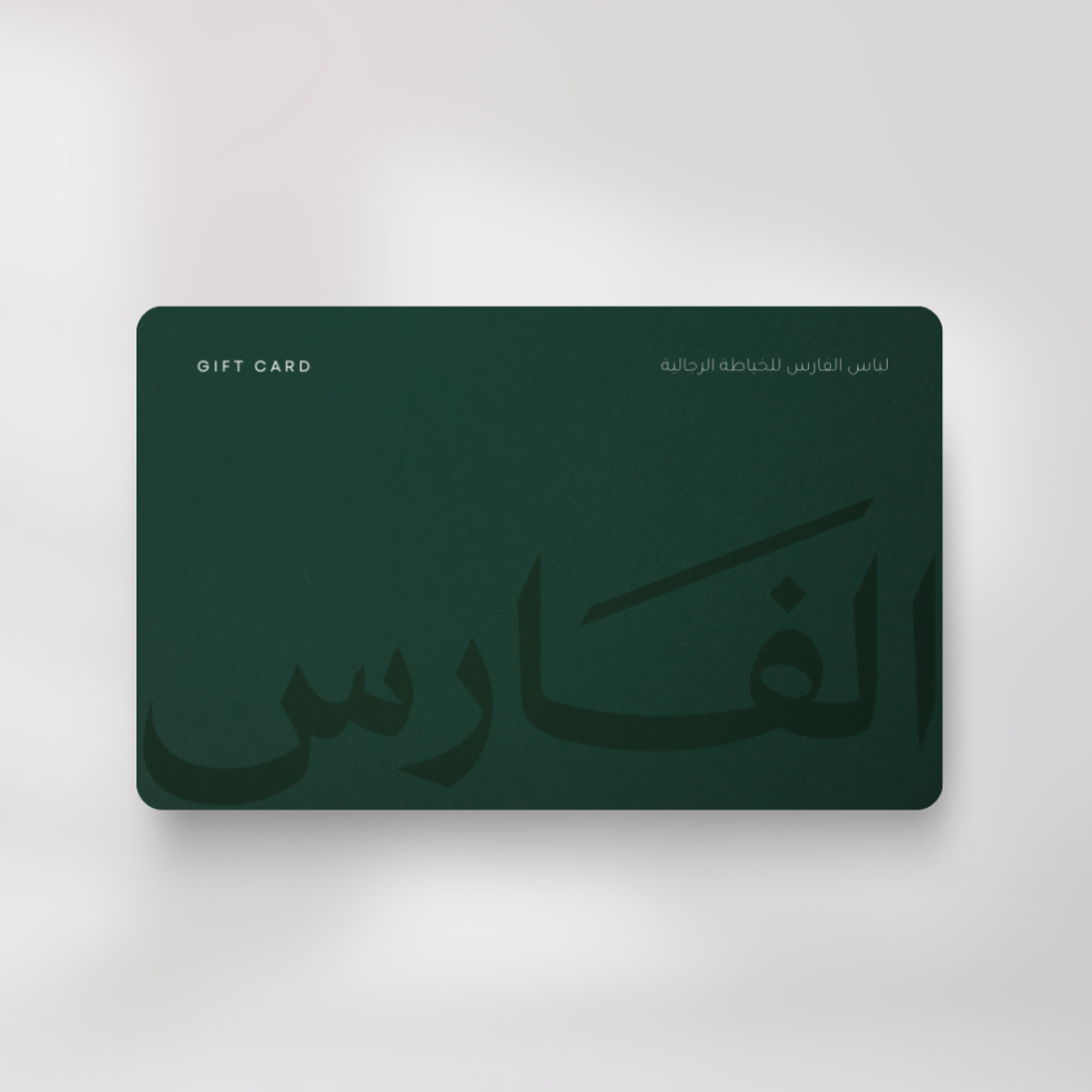 بطاقة لتفصيل ثوب من لباس الفارس، بتفصيل دقيق، وخامات فاخرة، وخدمة تعكس ذوقك ، اختر الأناقة لأحبابك، واهْدِ بثقة.